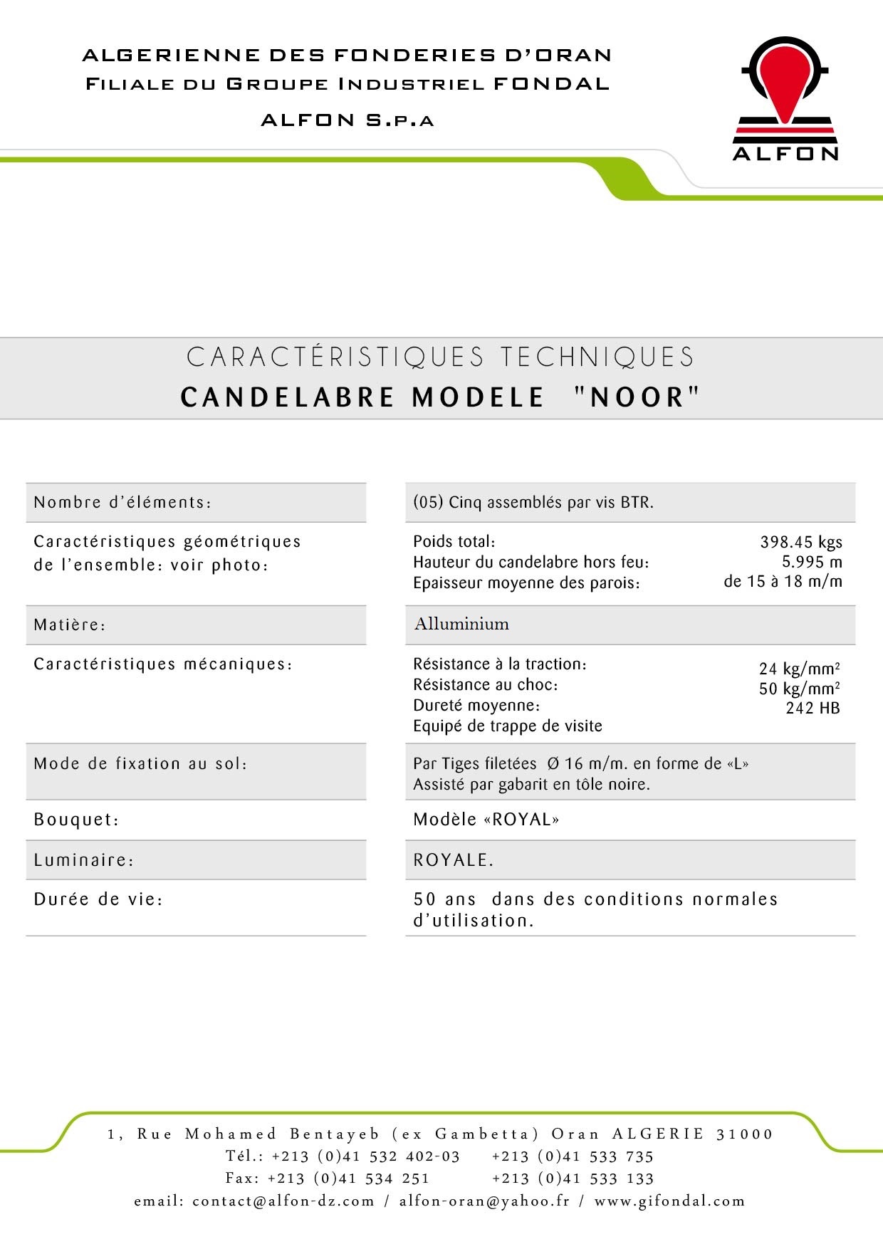 Lifespan: 50 years under normal conditions of use