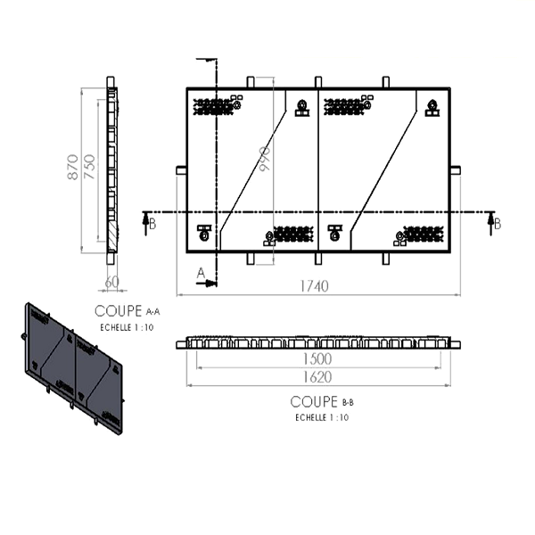 Revêtement : Peinture noire antirouille pour la trappe et le